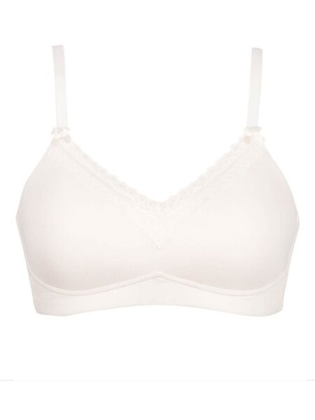 Sujetador con un suave preformado y una delicada puntilla rematada con una perlita en cada tirante. Comodidad y estilo perfectos para el día a día.