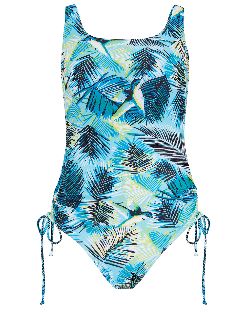 El traje de baño Palm Island captura a la perfección la esencia de una escapada a la playa. Diseñado para ajustarse como un clásico bañador de una pieza, este traje de baño resistente al cloro ofrece la opción de fruncido lateral ajustable para ajustar la altura de las piernas y brindarte la máxima confianza.